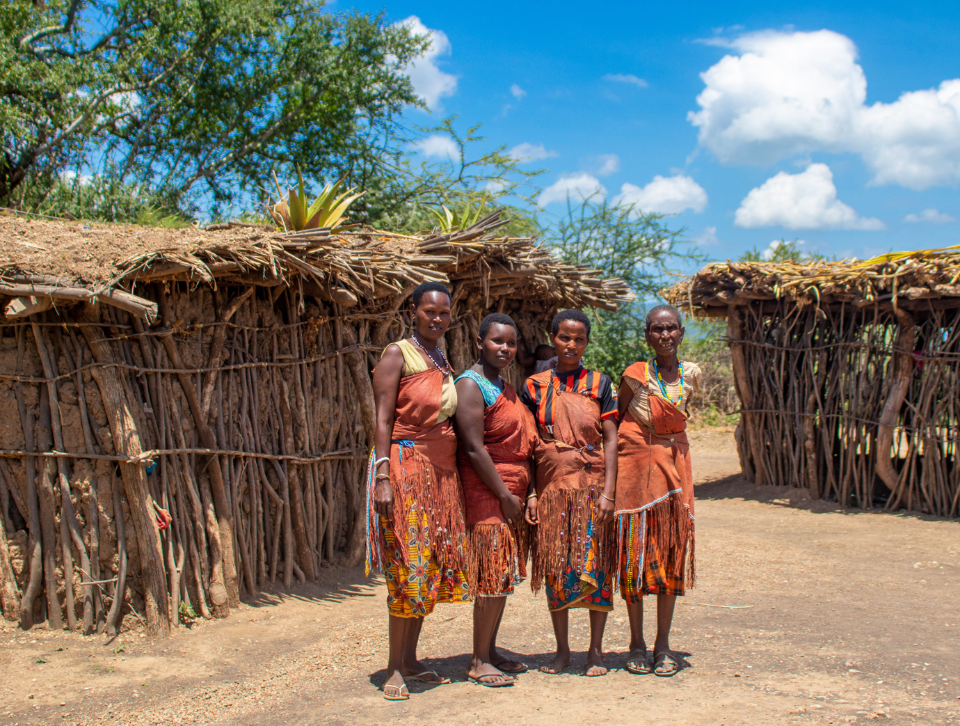 Netālu no hadzabēm dzīvo datogas – kalēji un rotu darinātāji. Datogas un hadzabes uztur draudzīgas un lietišķas attiecības – noteikts bultu skaits tiek mainīts pret noteiktu gaļas kilogramu skaitu. Datogu ciema apmeklējums.