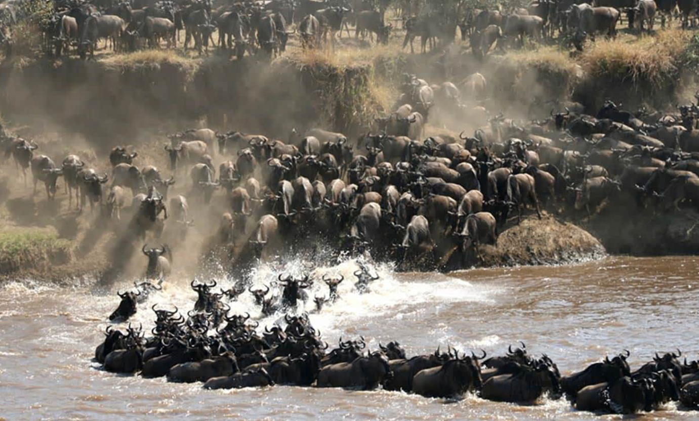 Katru gadu aptuveni 1,5 miljoni gnu un 300 000 zebru ņem mazuļus un sāk savu garo pārgājienu no Tanzānijas Serengeti līdzenumiem tālāk uz ziemeļiem - uz Maasai Mara nacionālo rezervātu, meklējot pārtiku un ūdeni. Dzīvnieku ceļojums rit pa apli pulksteņrādītāja virzienā, un dzīvnieki veic aptuveni 3000 km. Tas ir grūts ceļojums, kas paņem aptuveni 250 000 gnu dzīvības, jo, metoties pāri upēm, dzīvnieki cieš no krokodilu, lauvu un citu plēsēju uzbrukumiem.
