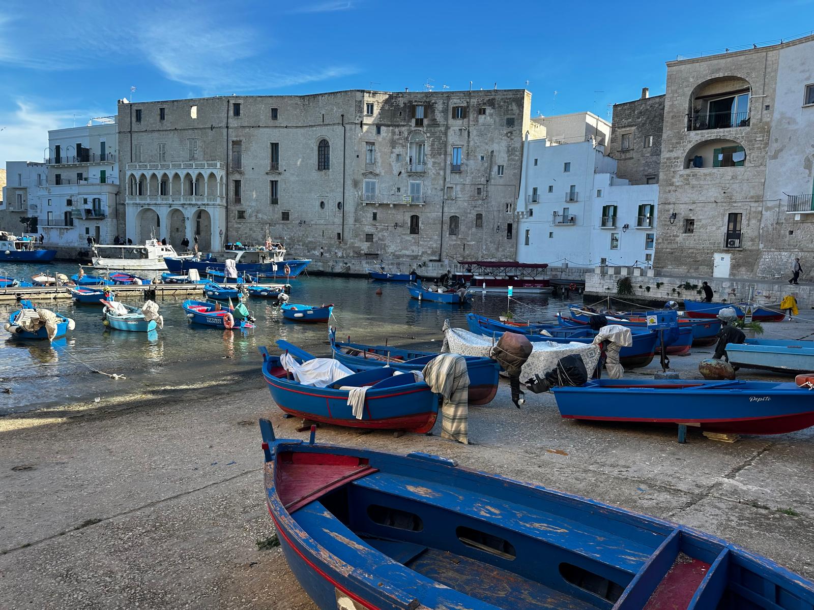 Dienas programmā vēl kāda skaista jūras pilsēta. Šauras, balti krāsotas ieliņas, ar zilām durvīm, ziedu podiem un balkoniem virs galvas. Īsta Vidusjūras pasaka, īpaši rīta un vakara gaismā. Monopoli ir zvejnieku pilsēta, tāpēc — zivis un jūras veltes obligāti! Crudità di mare – svaigu jūras velšu plate (neapstrādātas austeres, garneles, mīdijas). Riso, patate e cozze – tipisks apūliešu ēdiens: rīsi, kartupeļi un gliemenes. Focaccia barese un panzerotti – ideāli uzkodām. Un, protams, vietējais vīns Primitivo vai Verdeca.