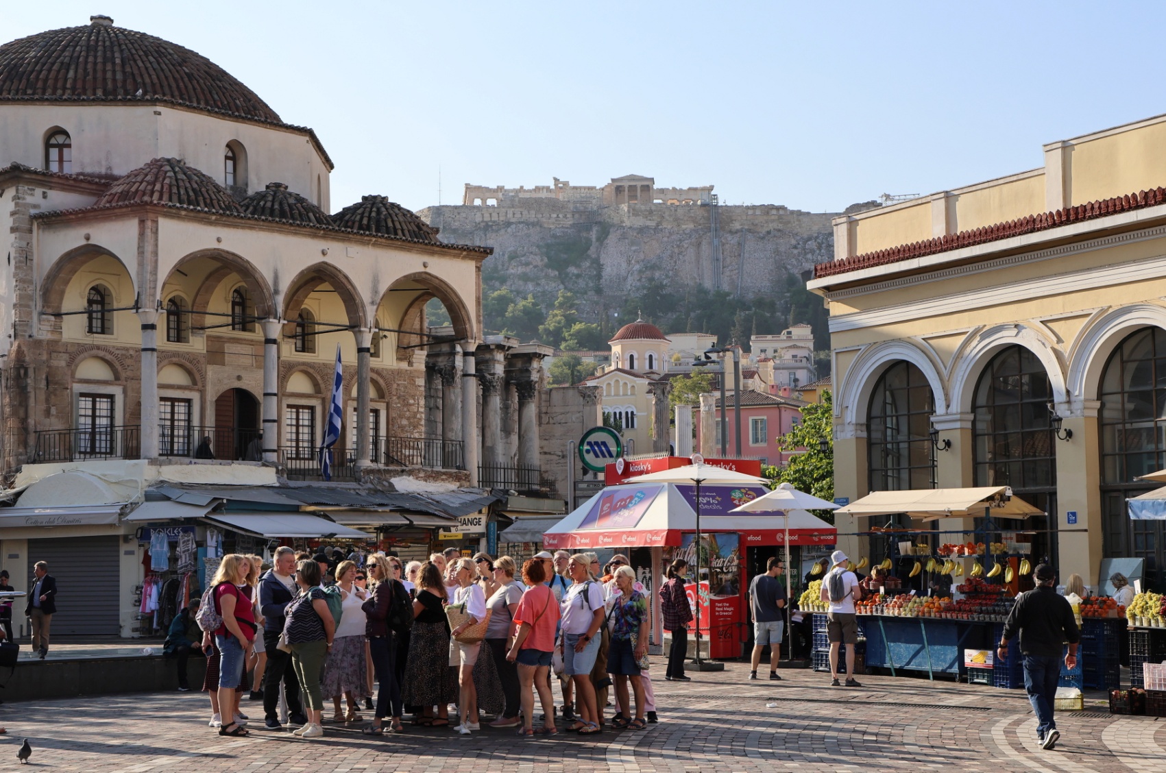 Kam vēlme, dodamies uz Monastiraki tirgotāju laukumu - vecpilsētas un tirgus ieliņu orientieri. Šeit skaisti restorāni ar skatu pār Atēnu jumtiem, uz Akropoli- lieliska vieta obligātajai aukstajai kafijai ar baklavu!