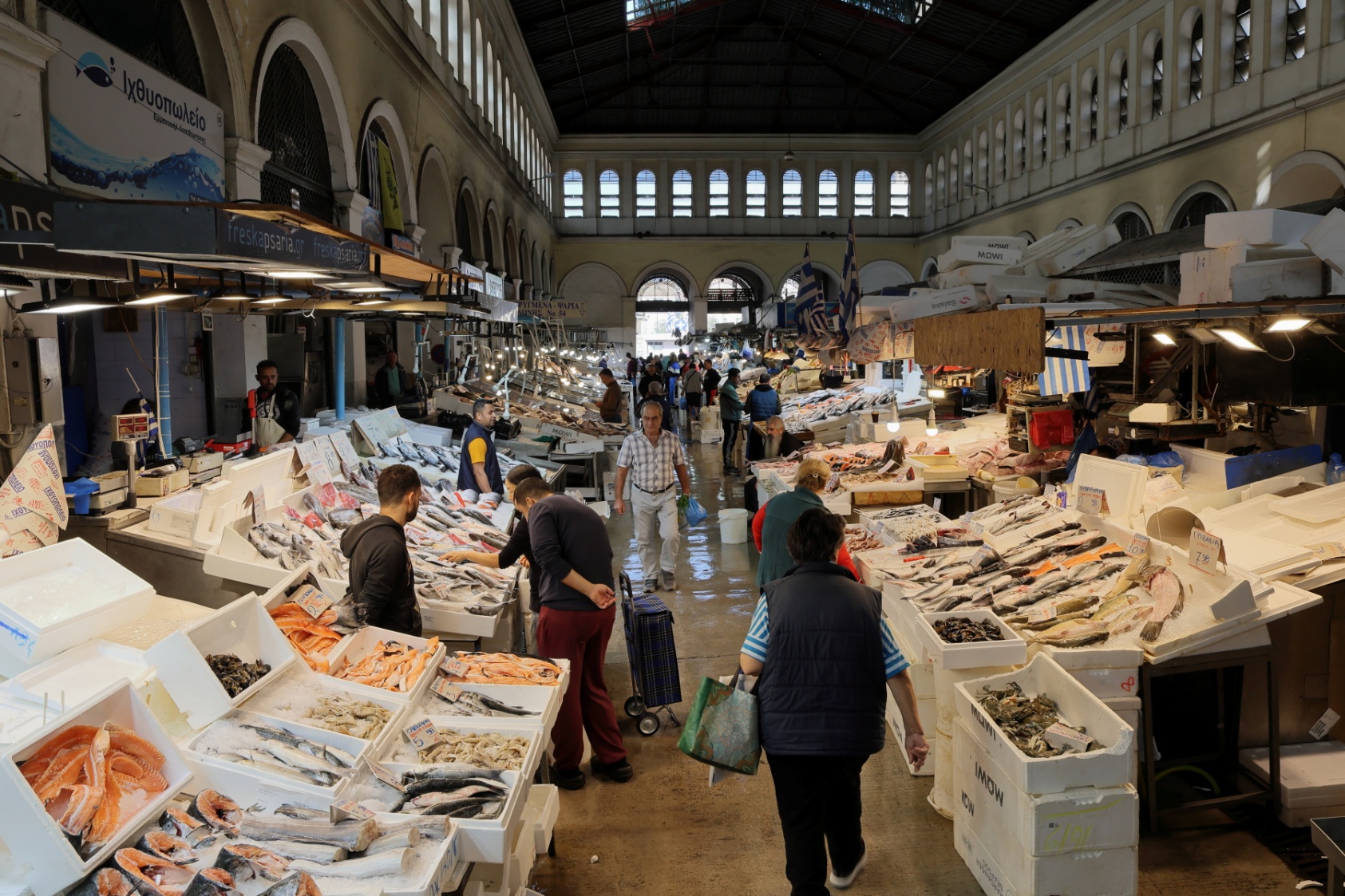 Interesants un autentisks ir saglabājies Atēnu tirgus- te visas smaržas un garšas sajaukušās vienā kamoliņā- vietējie var iegādāties gan zivis un gaļu, gan garšvielas, medu un riekstus.