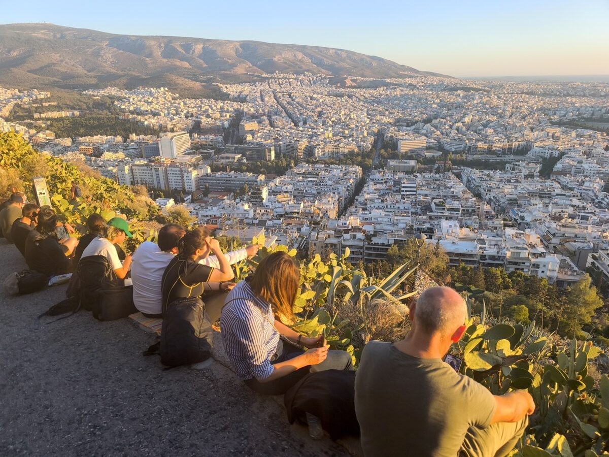 Atēnās ir kāds kalns, kurā var uzkāpt pa labiekārtotu, slīpu taciņu un vērot saulrietu pār pilsētas saulē sasilušajām ielām. Te var skaitīt Vidusjūras salas kā siltā pienā peldošu uzpūteni, vizuāli meklēt jau mazliet iepazītās ielas un apmeklēto Akropoli. Kalns ir populāra vietējo tikšanās vieta, un te esot un uzkāpjot, šķiet, ka esi atklājis un iekarojis savu pilsētas gabaliņu. Skatoties no kalna lejup, vieglāk apzināties Grieķijas galvaspilsētas mērogu un iedomāties tās sirdspukstus - tajā dzīvojošos četrus miljonus iedzīvotāju. Tiem, kam vēlme- vakara pastaiga un kāpšana kalnā vērot saulrietu. (Šī aktivitāte pēc izvēles).