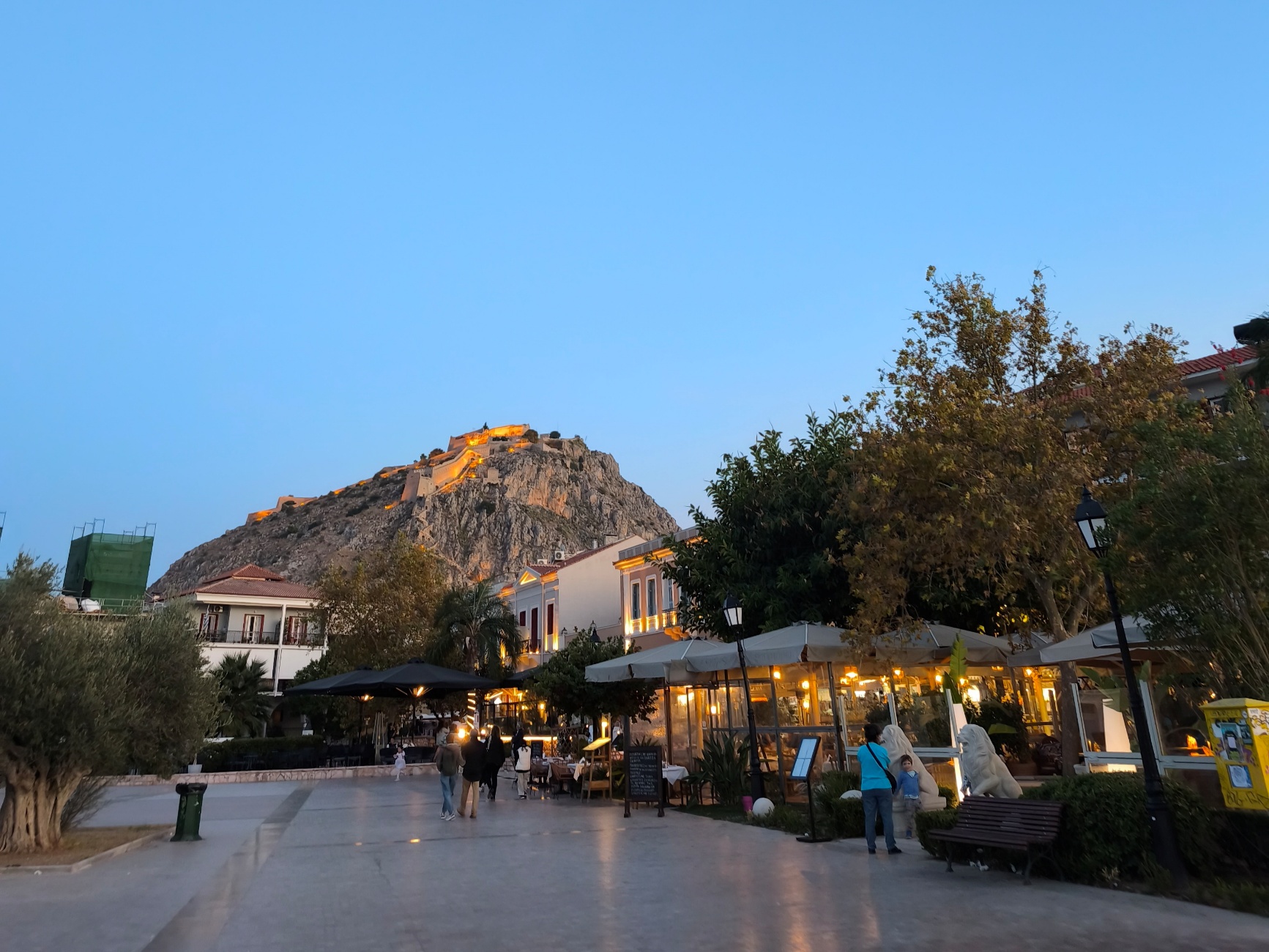 Kam vēlme, pilsētā apskatāma arī pils kalna galotnē, ko kā nocietinājumu uzbūvēja venēcieši. No pilsdrupām paveras skaists skats pār Peloponēsas pussalu- tās kalniem un zilajiem ūdeņiem- tomēr skats jānopelna- līdz pilsdrupām mērojami 900 pakāpieni augšup! Ieejas maksa pilī 20 eur/pers. Tāpat pilsētā atrodas mākslas muzejs, arheoloģijas muzejs, rotaļlietu muzejs, skaistas baznīcas, pirmā Grieķijas parlamenta ēka, fascinējošais kolomboloi jeb raižu kreļļu muzejs un citi.