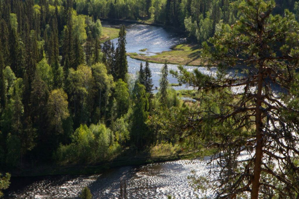 Pēdējā diena ved augšup uz Valtavaara — vienu no ikoniskākajiem skatu punktiem visā Karhunkierros. No šejienes meži izskatās bezgalīgi, un kļūst skaidrs, cik tālu esi nonācis — ne tikai kilometros.