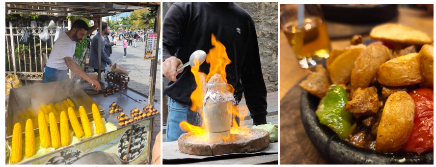 No pamatēdieniem iesakām nogaršot dažādus tradicionālus ēdienus, tai skaitā arī maltīti, kas tieši tā arī tulkojama: sultāna iecienītais! Edienkartē meklē Hünkar Beğendi – baklažānu sautējums ar mīkstu, ceptu un sautētu jēra gaļu. Turcija tiešām ir vieta, kur baudīt jēru arī, ja tas ikdienā nav pirmā gaļas izvēle- turki to prot pagatavot maigu, mutē kūstošu. Vēl kāds jēra gaļas ēdiens, Kuzu Tandır – lēni, garšvielās sautēta jēra gaļa, ierasti pasniegta ar dārzeņiem- gaļa ir tiešām mīksta un aromātiska! Ja vēlaties piedzīvot ko īpašu, iesakām pasūtīt Tas Kebabı – sautētu gaļu ar dārzeņiem, kas tiek sautēta un pasniegta slēgtā māla podā. No gaļas ēdienu pamatēdieniem visnotaļ interesants ir arī sultāna plovs jeb Saray Pilavı – īpašs rīsu ēdiens ar riekstiem, rozīnēm un garšvielām, ar vistas gabaliņiem. Starp veģetārajiem ēdieniem iesakām baudīt ēdienu, İmam Bayıldı , kas burtiski tulkojams kā “imams ģībst” – tieši tik gardi! Tas ir cepts baklažāns ar sīpoliem, tomātiem, ķiplokiem un garšvielām. Gardas ir arī uzkodas un mērcītes: dolma – vīnogu lapas, pildītas ar rīsiem, garšvielām, dažkārt ar gaļu, muhammara – sarkano piparu pasta ar valriekstiem, haydari – bieza jogurta mērce ar ķiplokiem un dillēm.