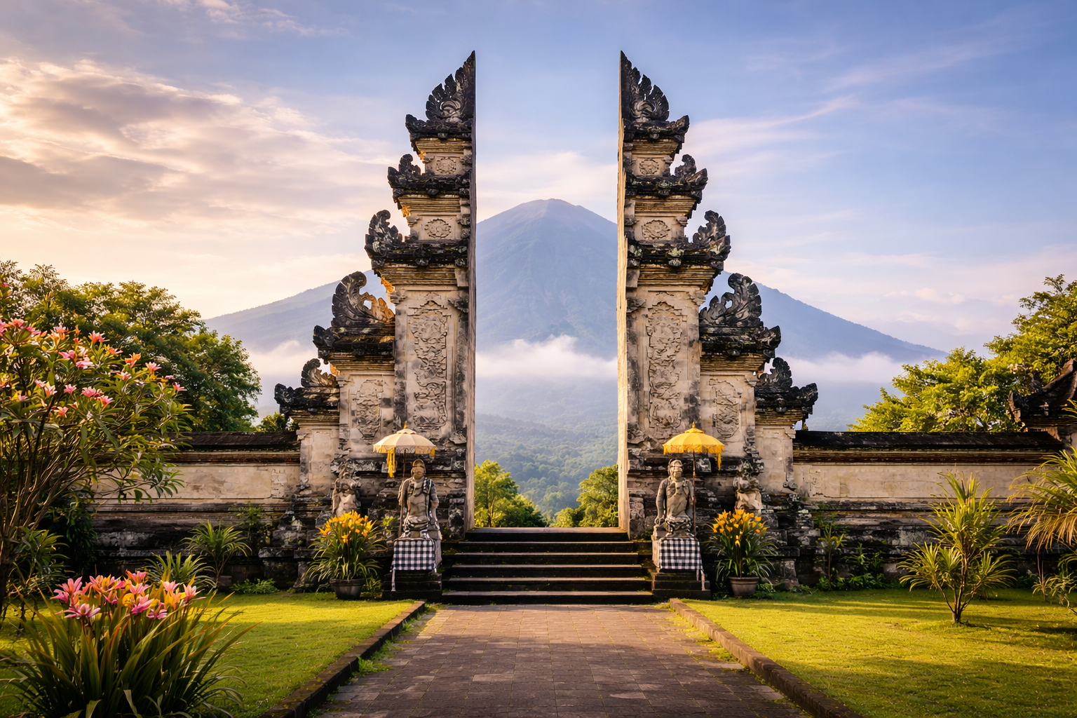 Esot šajā Bali daļā, noteikti jādodas uz leģendāro Lempujangas templi, kurš tiek dēvēts arī par debesu vārtiem un tā ir jaunlaulāto populārākā fotogrāfēšanās vieta Bali. Šis senais hindu templis piedāvā elpu aizraujošus panorāmas skatus uz Bali augstāko vulkānu Agung un apkārtējo ainavu. Īpaši skaists tas ir saulrietā. Pusdienas kādā no vietējiem restorāniem.