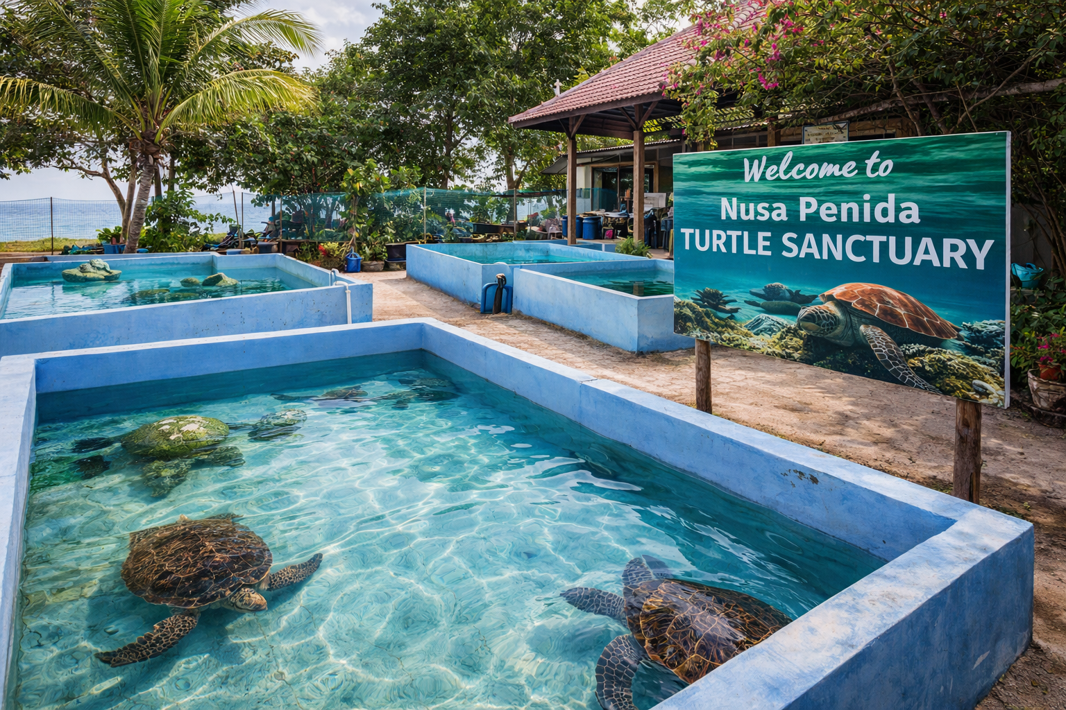 Vēl šeit atrodas bruņurupuču aizsardzības un izglītības centrs. Tas nodarbojas ar bruņurupuču rehabilitāciju, aizsardzību un atbrīvošanu. Sastapsim vietējo komandu un starptautisku brīvprātīgo grupu, kas palīdz aizsargāt apdraudētos Indonēzijas jūras bruņurupučus. Centrā var katrs brīvprātīgi piedalīties bruņurupuču aizsardzībā, barojot bruņurupučus, tīrot akvārijus, ķerot bruņurupučiem dzīvo barību, tīrot pludmali, identificējot bruņurupuču sugas, vācot olas, uzraugot ligzdas vai palīdzot mazuļiem droši nokļūt jūrā.