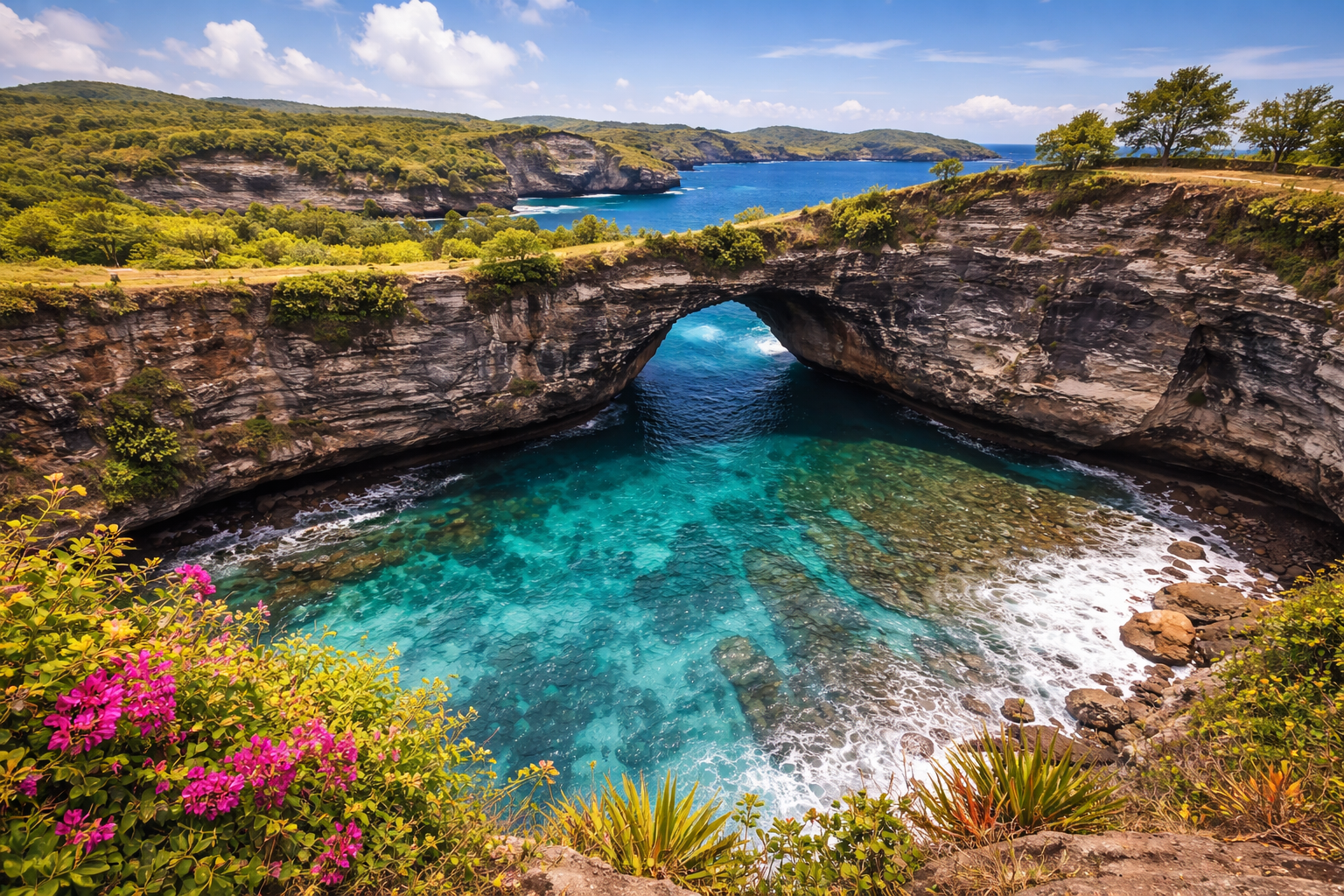 Trīs dienu izbraukuma ekskursija uz Nusa Penida salu (kuģīša biļetes, transports uz salas, ieejas biļetes apskates objektos): 160 EUR/pers.