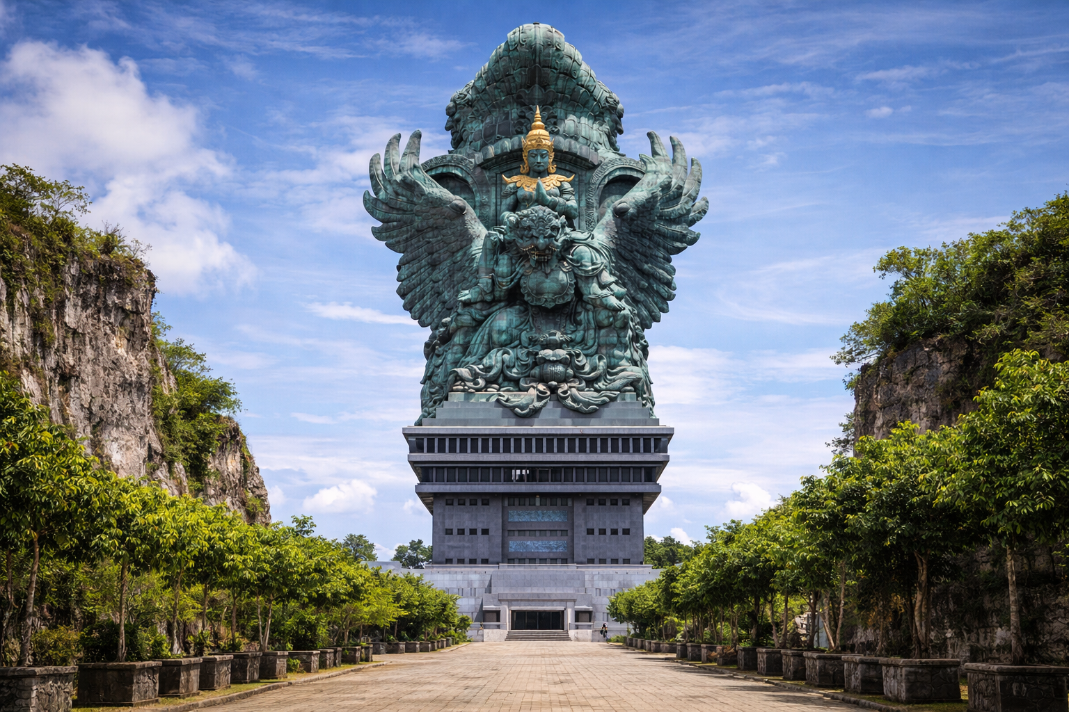 Šodien arī apskatīsim Garuda Wisnu Kencana kultūras parkā, kurā plašā teritorijā izvietotas milzīgas hinduistu statujas un ikoniski Bali kultūras pieminekļi, tostarp Garuda Wisnu Kencana statuja, kas ir 121 metru augsta un attēlo hindu dievu Višnu un viņa zirgu, Garudas putnu. Parkā notiek dažādas kultūras aktivitātes, tradicionālās baliešu mūzikas un deju priekšnesumi.