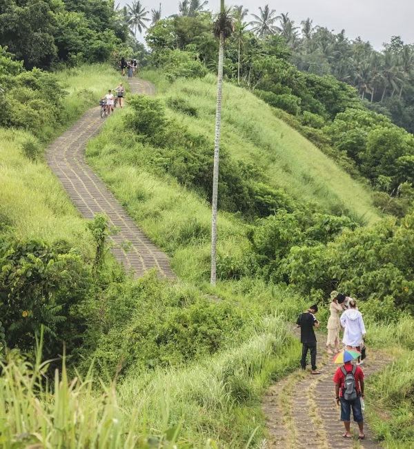 Pusdienas ieturēsim kādā no Ubudas restorāniem, baudot vietējās virtuves eksotiskās garšas un smaržas. Mierīgā tempā izstaigāsim Campuhan Ridge Walk, lai apskatītu Ubudas apkārtni un dabu. Tā ir zaļojoša, gleznaina pārgājienu taka ar plašiem skatiem, kas paveras no kalna virsotnes. Iespējams, ka satiksim baliešu garastes makaki, kuri mitinās šajā apkaimē.