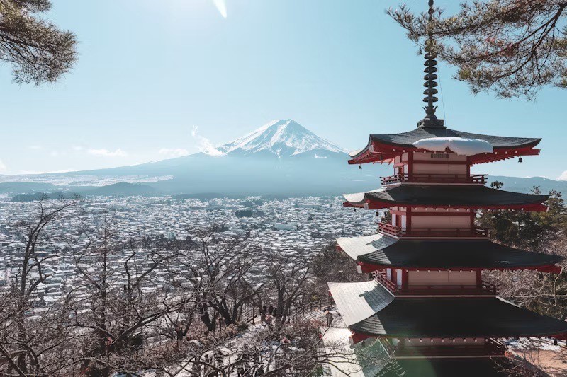 Viesosimies Arakurajama parkā, kas ir slavens skatu punkts, kur redzams Fudži kalns kopā ar tradicionālo Chureito pagodu. Īpaši populārs pavasarī sakuru ziedēšanas un rudenī krāsaino lapu laikā. Apmēram 400 kāpņu pakāpieni līdz augšai, bet skats ir tā vērts.