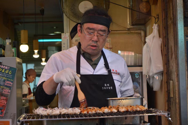 Dienas turpinājumā pilsētas ēdienu tirgus, kas ir slavens ar svaigām jūras veltēm, uzkodām un restorāniem. Šajā zivju tirgū jābauda svaigs suši, jūras veltes (piemēram, tunča bļodas, jūras ežu suši), kā arī dažādi ielu ēdieni - tamago-yaki (olu rullīši), grilēts krabis, matcha deserts un daudz kas cits. Katrā gadījumā šī ir interesanta pieredze.