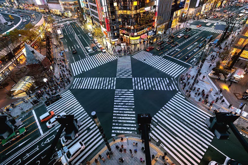 Tāpat redzēsim vienu no pasaulē slavenākajām un noslogotākajām gājēju pārejām. Simtiem cilvēku šķērso krustojumu no visām pusēm. Skats no augšas (piemēram, no Starbucks vai Shibuya Sky) ir iespaidīgs.