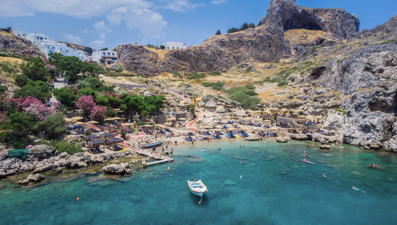 Dienas otrajā pusē iespēja peldēties un atpūsties kādā pasakaini skaistā, klinšainā pludmalē, vai doties pārgājienā pa pussalas klinšainajiem krastiem. Vietējie šo sauc par vienu no skaistākajām Rodas pludmalēm- ne velti šo vietu noskatīja Holivudas režisori - 1961.gadā te uzņemta tajos laikos panākumiem bagātā Holivudas filma Navaronas ieroči.