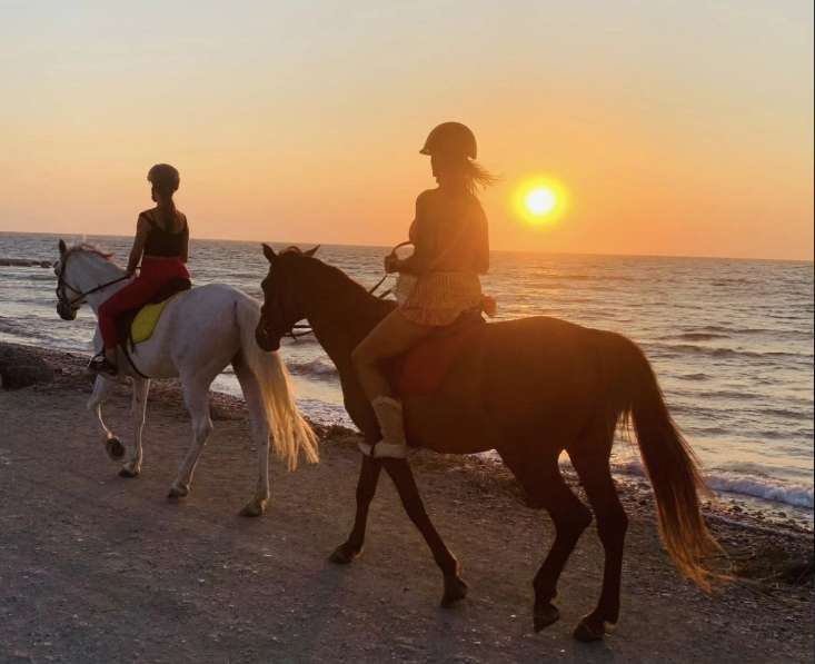 Tie, kas vēlas saulrietu sagaidīt pie pludmales, zirga mugurā, ir aicināti šovakar doties mierīgā izjādē-pastaigā ar fotopauzēm gar jūras krastu un gar skaistiem krasta skatiem! Pieredze pieejama gan iesācējiem, gan ceļotājiem ar jāšanas pieredzi, izjādes ilgums ap stundu. Ievērībai- zirgi dodas lēnā pastaigā- skriešana aulēkšiem nav atļauta! Vēl- Rodas salas krasts, kurp dodamies, ir klinšains- jāšana pa ūdeni arī nav iespējama. Piedzīvojumā dodoties, jāvelk slēgti apavi. Vienlaikus izjādē var doties 6 cilvēki- ja grupā būs liela interese, saulrieta zirga izjādes organizēsim vairākus vakarus vai vienu pēc otra- pēc iespējas.