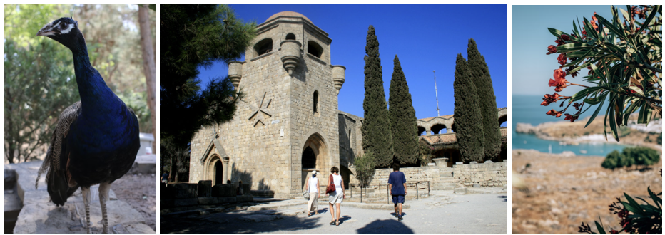 Dienas pirmajā pusē dodamies uz kādu īpašu klosteri un teritoriju, no kuras paveras patiesi skaists skats pār Rodas salu! Labā laikā no šīs kalna galotnes saskatāma salas augstākā Ataviros kalna virsotne un pārdesmit kilometru attālie Turcijas krasti. Kalna galotnē, priežu ieskauts nu te atrodas Filerimos klosteris , uzbūvēts uz 3000 gadu senām grieķu dievu tempļu drupām. 1200.gadā te esot ieradies mūks no Jeruzalemes un te, kalnā, izveidojis svētnīcu, ko arī vēlāk kristieši aizsargājuši un 1400.gadā paplašinājuši, izveidojot klosteri, kādu to redzam mūsdienās. Klostera pagalmā uz dzīvi apmetušies pāvi, ja laimēsies, redzēsim arī tos. Kalna galā izvietots arī krusts, kā simbols par reiz 12 Dievu vietā nu valdošo pareizticību.