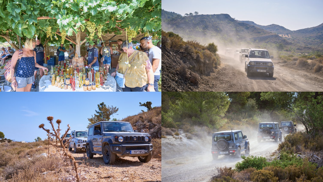 Džipu brauciens iespējams, ja būsim 10 un vairāk personas. Brauksim caur skaistiem dabas skatiem, tradicionāliem ciematiņiem, līdz septiņu avotu ūdenskritumam. Iespēja dienas gaitā piestāt pie vietējiem augļu, uzkodu tirgotājiem iestiprināties un iegādāties īpašus suvenīrus- vietējo medu, olīveļļu, vietējos saldumus. Džipu ceļš vedīs arī gar kādu 15.gadsimta baznīciņu, pie kuras varēsim pasmelt un iepildīt svaigu avota ūdeni. Dienas noslēgums pirms atgriešanās - kāda vīnsaimnieka apmeklējums – uzzināsim par vietējo vīnu kultūru, iespēja pastaigāt vīna dārzos.
