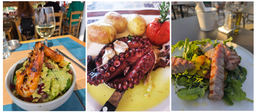 Ko baudīt pusdienās? Par grieķu ēdieniem varētu stāstīt un stāstīt- ceļojums garšās arī būs absolūti pasakains! Grieķi māk pagatavot visu- sākot no dārzeņiem – gardi ir fritēti cukini ziedi, baklažāni, vīģu lapās tīti rīsi un maltā gaļa, svaigi salāti, pildīti dārzeņi (tomāti, pipari, baklažāni, kabači), krāsnī ceptu kolokoudi jeb ķirbi! Ja runa par Rodas salas ēdieniem, to pamatā noteikti būs graudaugi, olīvas, jūras veltes un gaļa, ēdieniem bieži pievieno medu, riekstus.