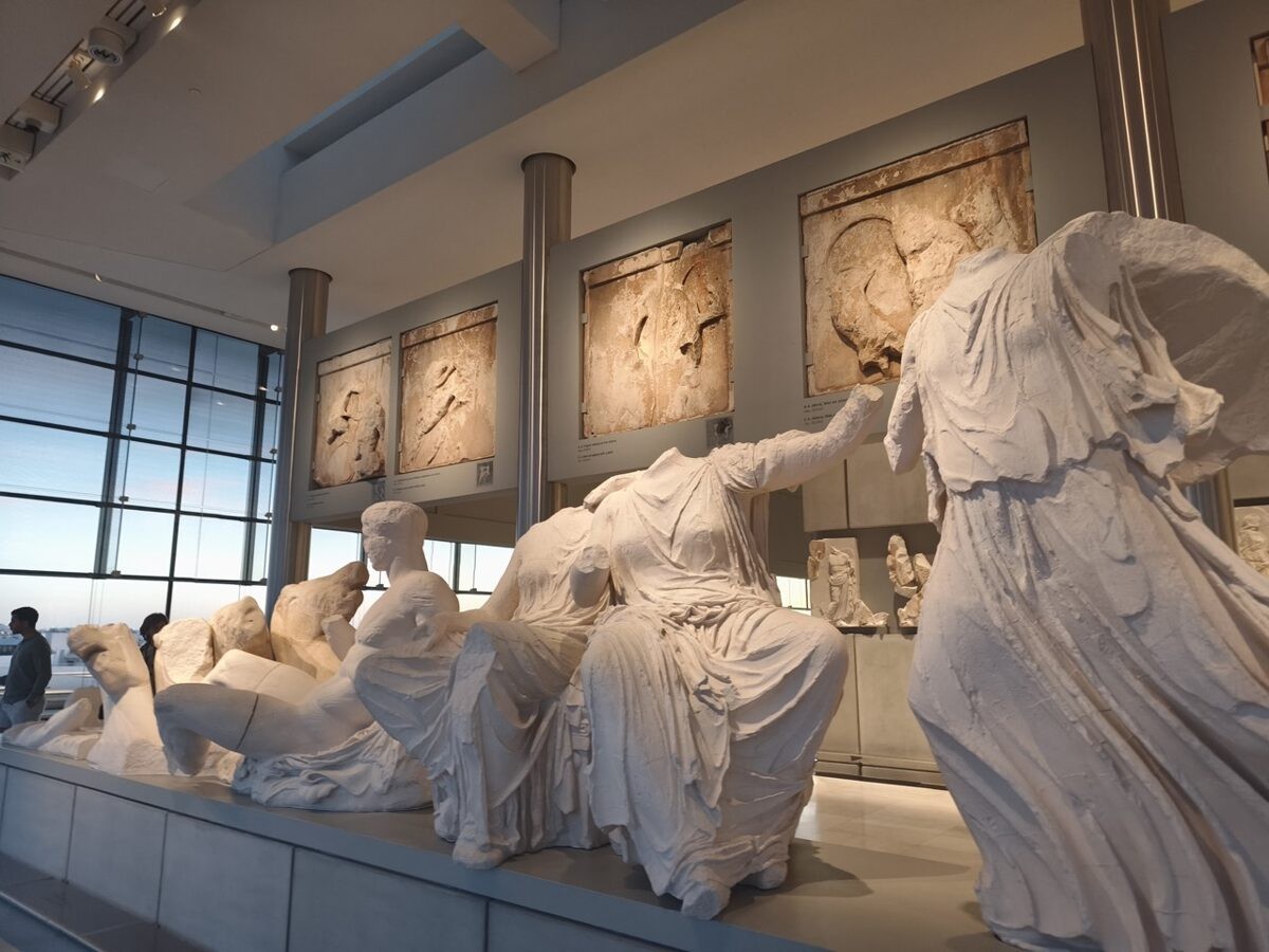 Jautāsiet, kāpēc muzejs saucams par skandalozu? Te starp 4000 antīkās mākslas eksponātu atrodas arī to mākslas darbu kopijas, kuru oriģinālus 1801.gadā no Atēnām uz Londonu izveda diplomāts Eldžins, tādejādi aplaupot Akropoli. Jau vairāk kā 200 gadu, līdz pat šodienai eksponāti atrodas Britu muzeja īpašumā un Atēnu muzejs sev par mērķi izvirzījis atgādināt mākslas darbu piederību un izcelsmi, cerot saņemt tos atpakaļ grieķu tautas īpašumā.