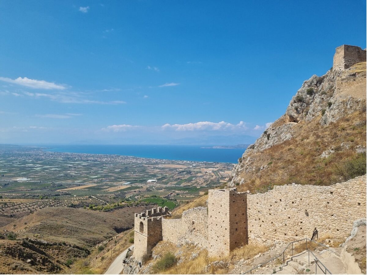 Dodamies uz kalnu 550 metru virs jūras līmeņa, kurā atradās šī slavenā, varenā, grieķu dievus un pēc tam- vienu Dievu pielūdzošā korintiešu tauta. Te saglabājušies pilsētas mūri un ejas, tomēr kāpiens ir stāvs - velkam ērtus apavus!
