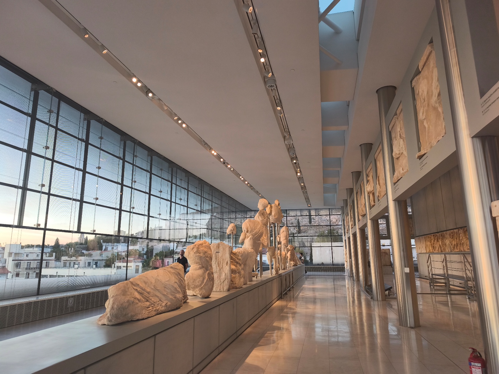 Jautāsiet, kāpēc muzejs saucams par skandalozu? Te starp 4000 antīkās mākslas eksponātu atrodas arī to mākslas darbu kopijas, kuru oriģinālus 1801.gadā no Atēnām uz Londonu izveda diplomāts Eldžins, tādejādi aplaupot Akropoli. Jau vairāk kā 200 gadu, līdz pat šodienai eksponāti atrodas Britu muzeja īpašumā un Atēnu muzejs sev par mērķi izvirzījis atgādināt mākslas darbu piederību un izcelsmi, cerot saņemt tos atpakaļ grieķu tautas īpašumā.