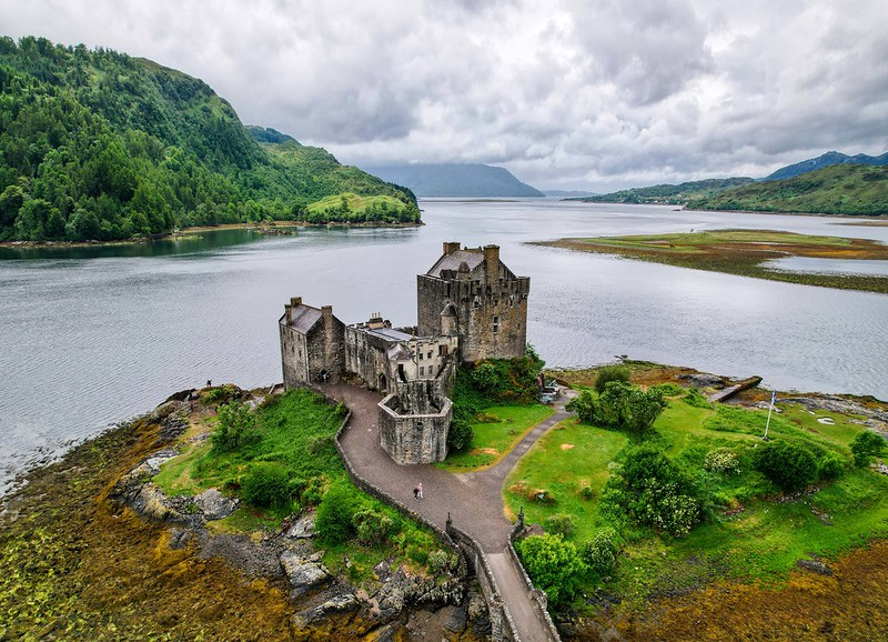 Pēc atgriešanās krastā sēžamies autobusā un dodamies Skye salas virzienā, bet pa ceļam vēl apstāsimies vietā, kur satiekas trīs Skotijas skaistie ezeri un kopš 13.gadsimta šajā vietā lepni slejas Eilean Donan pils - viena no Skotijas ikoniskākajiem apskates objektiem, ko katru gadu apmeklē tūkstošiem ceļotāji no visas pasaules. Šī pils ir īsta filmu zvaigzne, jo tajā tikušas filmētas vairākas epizodes filmām: Highlander (“Kalnietis” 1986.g.), James Bond 007 “The World is not Enough” (“Ar pasauli nepietiek” 1999.g.), Elizabeth: The Golden Years (“Elizabete: Zelta gadi” 2007.g.) un Rob Roy (1995.gada filma par leģendāro Robina Huda dzīvesstila piekritēju skotu Robu Roju Makgregoru). (Pili un apkārtni apskatīsim no ārpuses).