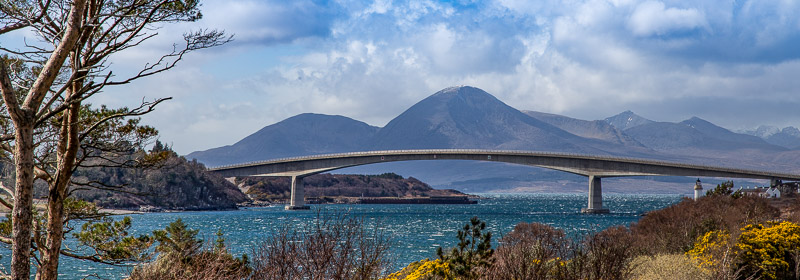 Turpinām ceļu un jau pēc brīža pārbraucot pāri 700 metrus garajam tiltam (precīzāk - diviem savienotiem tiltiem), esam Skotijas visskaistākajā un visromantiskākajā salā - Skye. Kaut gan paši skoti, pateicoties laika apstākļu un vēstures līkloču lappusēm, nevar izcelties ar īpašu romantismu, šī sala daudzu cilvēku prātos ir tieši tāda - nesabojāta, neskarta un ar savu mierīgo ikdienas ritumu - paredzama notikumos, bet ļoti nepastāvīga laika apstākļos. Šis “mierīgums” gan būtiski tika izmainīts 1995.gada 16.oktobrī, kad starp salu un kontinentu atklāja savienojošo tiltu, jo līdz tam brīdim vienīgais transports, lai nokļūtu Skye, bija prāmju līnijas.